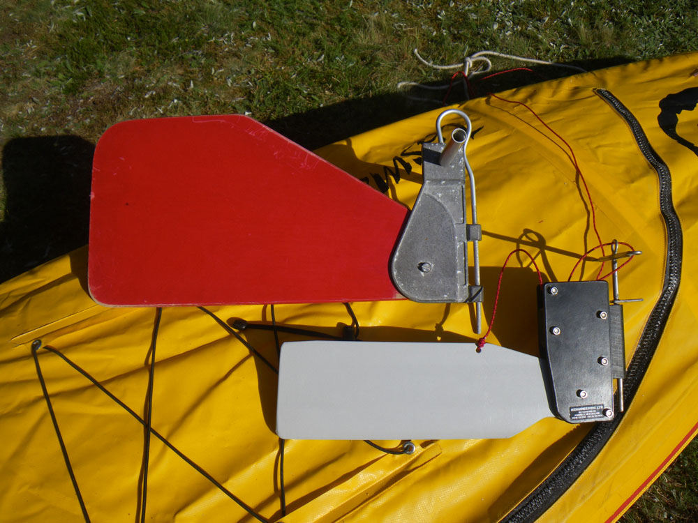 Talking of which, the rudder which comes with the Incept (left, below) is a beautiful piece of gear; much more serious that the piece of plywood and hinge which came with my old Grabner (but is still an expensive option).