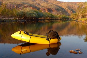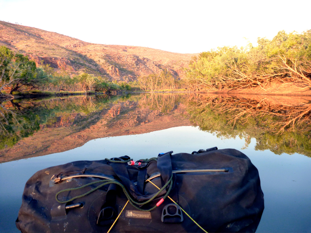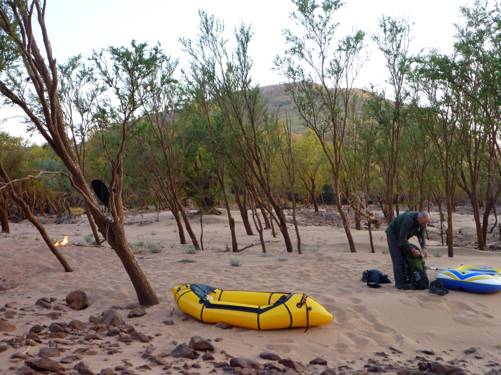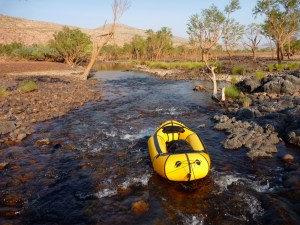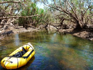 I needed to radically revise my portaging set up. My yellow Watershed ‘day bag’ was better out of the way inside the UDB which now sat in the boat not perched across the bow. That worked much better for wading and towing while I sat with feet plonked on either side in a suitably reclined paddling posture. Like this I could also access the UDB in the boat if needed, and forward visibility was better too while the Yak’s extended ‘fastback’ tail compensated for the rear-weighted trim. I’d also ditched my cumbersome water bag and now simply drank from the river. We’d brought my Katadyn and used it most evenings. Jeff stuck with it, but I found carrying a full day of water too heavy at the rate I drank it. I took care to drink from less skanky pools and flowing riffles and never got sick.