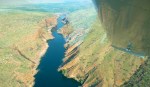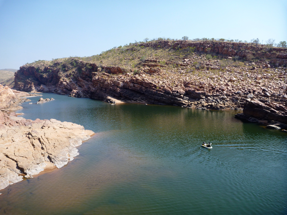 Presently the gorge turned left to break through the ridge and soon choked on the effort. It was here that the dam proposed over 50 years ago would have been sited, to match the Ord Irrigation Scheme near Kununurra in the East Kimberley. Although the idea gets revived once in a while, as things stand the Fitzroy is unlikely to get dammed here.