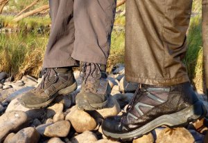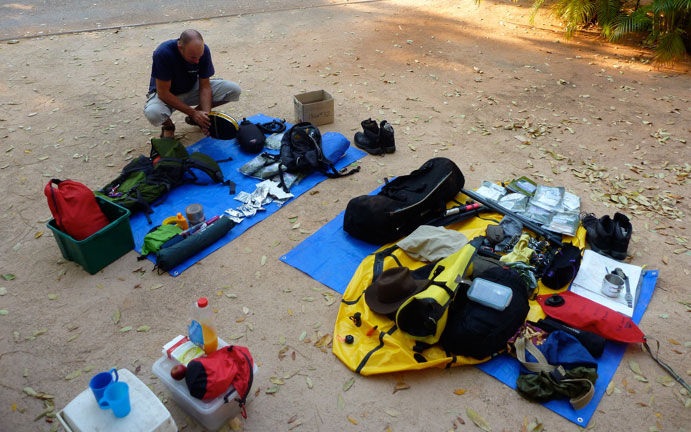 In the end, although lacing the Brashers up was a pain, you do need a pair of tough boots if you plan to be walking in the Kimberley – Tevas or Keen Arroyos will not do when packing a load. I poked drain holes in mine after a couple of days so my feet would not get sodden, but in the end it was better just to put them on when needed, even for a short portage. Teva Omniums much better.