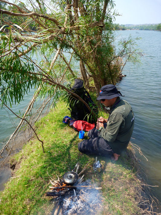 We took my Pocket Rocket knock-off stove and a gas can but only used it on the last morning where there was no wood nearby on our sandbank. At all other times there was plenty of dry wood and little risk of a bushfire along the river bank. Out in the open during very windy conditions a stove would be less risky.