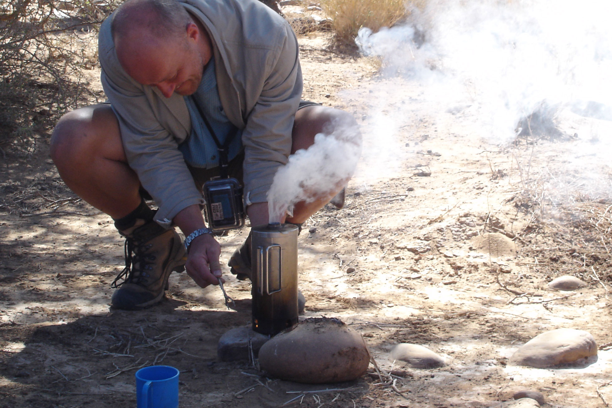 Good points Very light; operating knack soon acquired; in the right environment fuel is everywhere; quicker and more efficient that a pot on an open fire. Unlike gas or liquid cans, can carry on a plane without issues. Tatonka folding-handle mug just fits inside.
