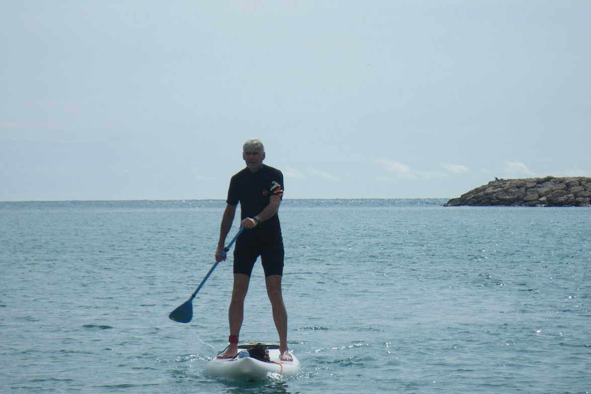 The next challenge was to paddle straight. Since a SUP paddle is single blade, giving several strokes along one side then the other causes the board to yaw, even if keeping the paddle as vertical and as close to the board rail as possible. Although it proved impossible to achieve a straight line, switching sides about every 4 or 5 strokes produced an acceptable S-line while maintaining an almost continuous paddling rhythm. in spite of my precarious stance, my awkward paddle strokes were effective enough to drive me and my board along the desired route and reach the spots I was aiming at (buoy, yacht at anchor, jetty). The more proficient I grew, the more direct my course and the faster my pace became and the less I fell off.