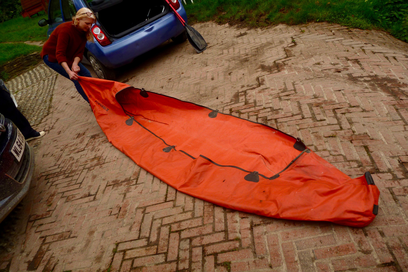 High time to patch up my latest IK: an old Semperit Forelle 2 I picked up in Cornwall. The boat was sold with some classic paddles which went straight in the bin, as well as a big tear in the side (right). Plan is to patch that hole, then see if it still holds air.