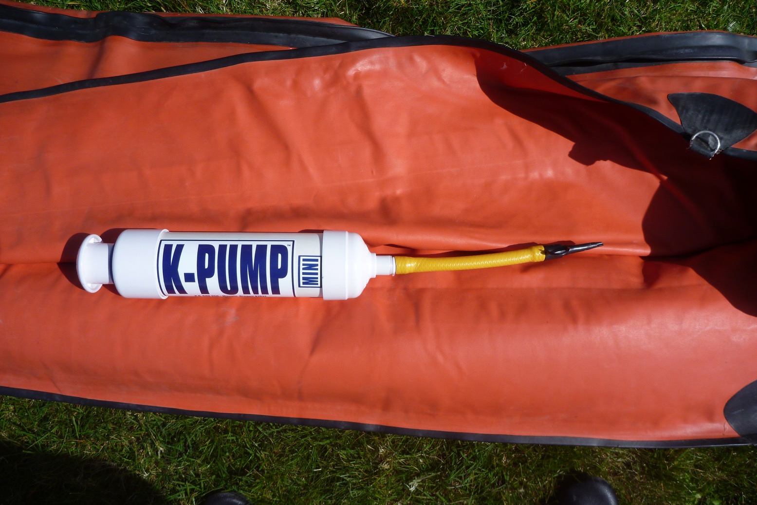 With them in place I couldn’t resist rigging up the old Trout with a rope-and-pipe-lagging backrest, an old Alpacka packraft seatbase; a drainpipe footrest tube and a lead. All stuff I happened to have in my IK box of bits or found in the barn among the rat droppings. I jury-rigged the K-Pump for nozzeling but haven’t pumped it right up to 2psi as I’m letting that big patch cure for a bit.