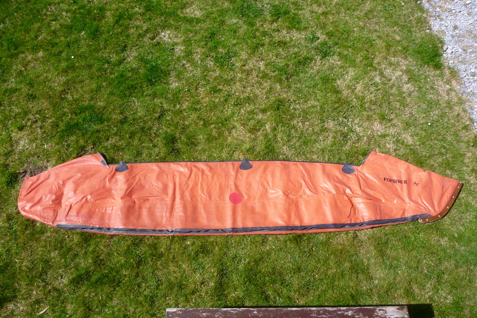 Semperit is an Austrian tyre manufacturer who’s still in business. Afaik, their IKs were a bit of a short-lived rubbery diversion in the 1960s. If my 40-year-old boat has no other more awkward leaks, I’ll rig it up and take it for a spin. But first, I scrubbed off a couple of decades of crud and let it dry.