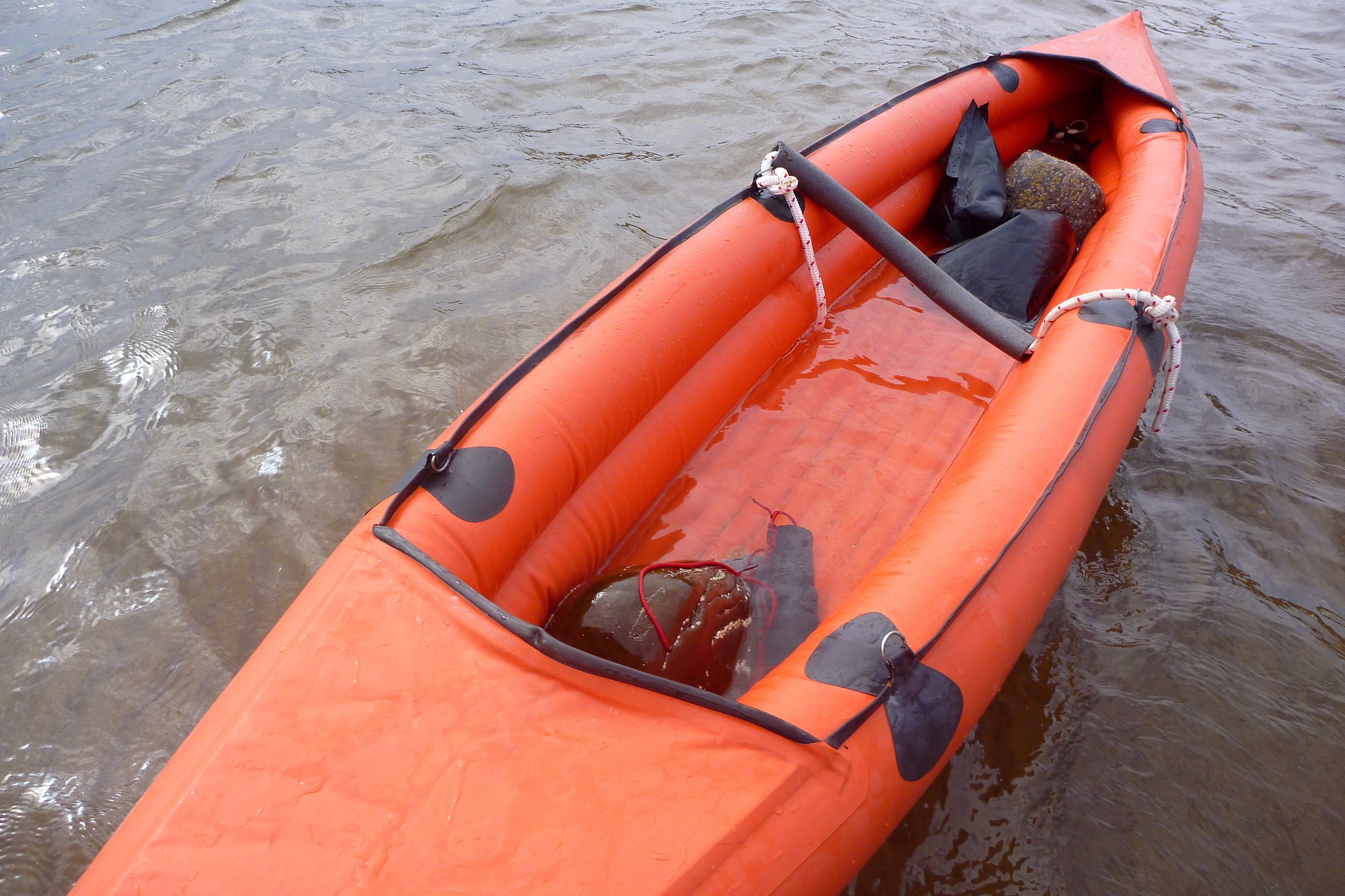 If the Semp proves viable, I may replace them with proper IK valves. Or I may just leave them as they are. Three £15 Gumotex valves + a £20 PRV will cost the same as the boat, and the lilo plugs can be regarded as their own ‘total loss’ PRVs – when the boat gets too hot they pop! And anyway, there’s no room to fit a big IK valve in the floor as the tubes are too close together. Knock-off Halkey valves go for 7 quid; I might stick a couple in the sides and leave the lilo plug in the floor.