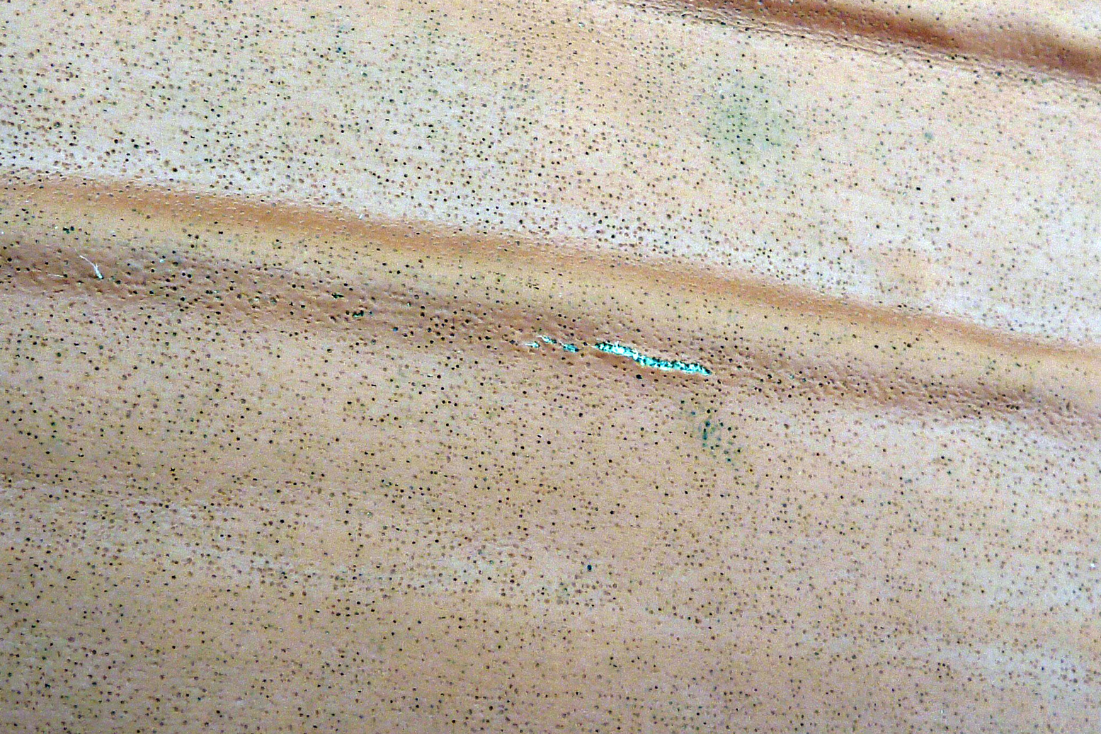 I reinflated a day or two later, but a few days on noticed the floor was flat. I pumped it up again – air was hissing from a crack in the hypalon coating inside the boat, more or less under the seat (below; colours enhanced for clarity).