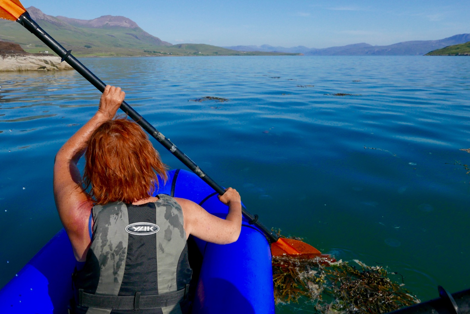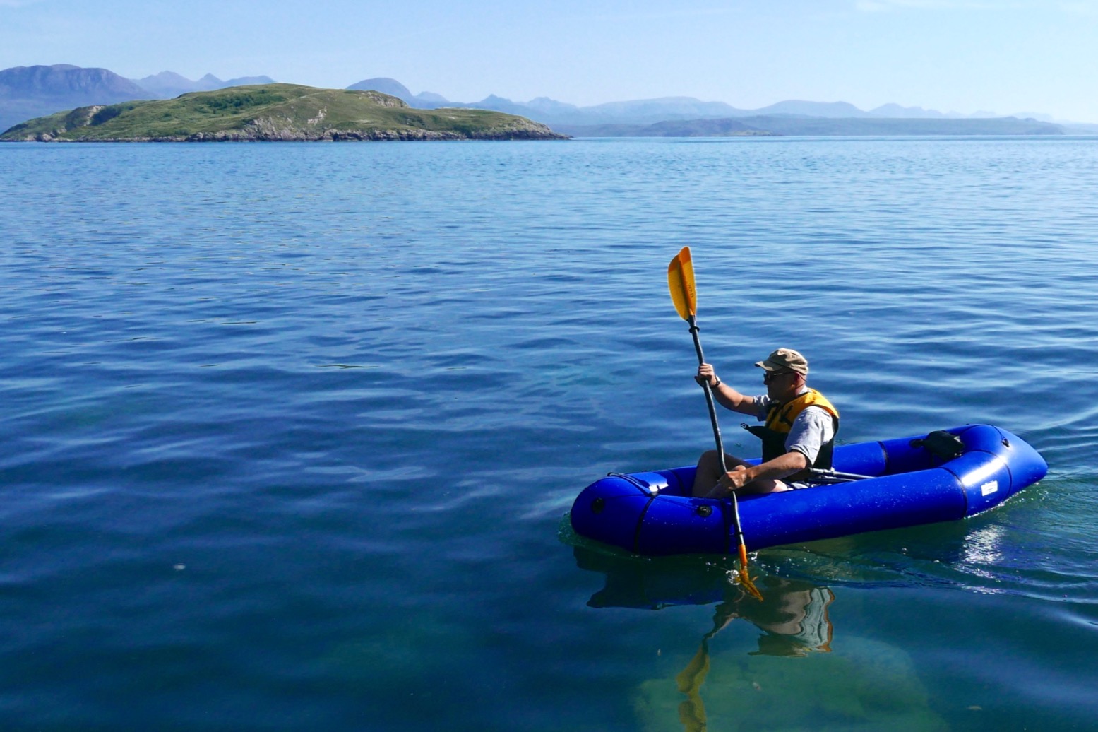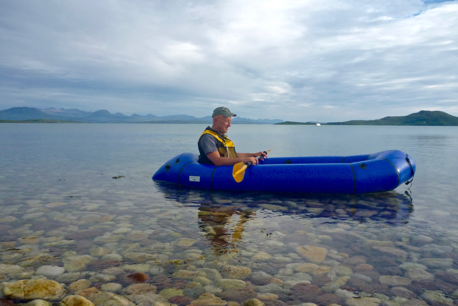 The warm weather had brought in swathes of dying jelly fish which was a reminder we were in a single-chambered boat about a millimetre thick. If a seal mistook it for a tasty blue sea-pastille all we’d have is our pfds and the seat pieces. It’s all in the mind of course, but out on the water in an untried packraft you can feel vulnerable so I kept close to the shore. There’s more to look at here anyway, but things like a thick floor and double-sided hull were reassuring.