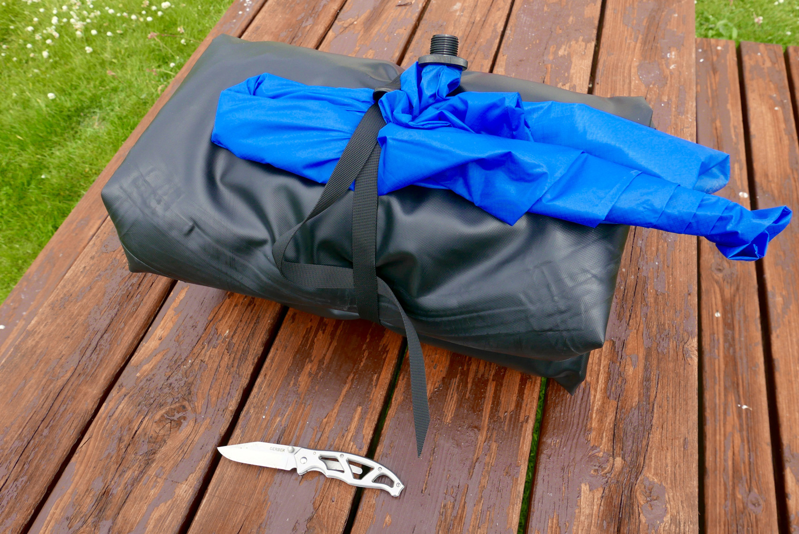 After weighing in at 4.6kg with strap and air bag, once unrolled I was pleased to see how long it looked; I’ve had IKs that are nearly as long. Solo or two-up, that ought to add up to steadier tracking which packrafts do well anyway, but also less bow yawing which can slow a packraft down.