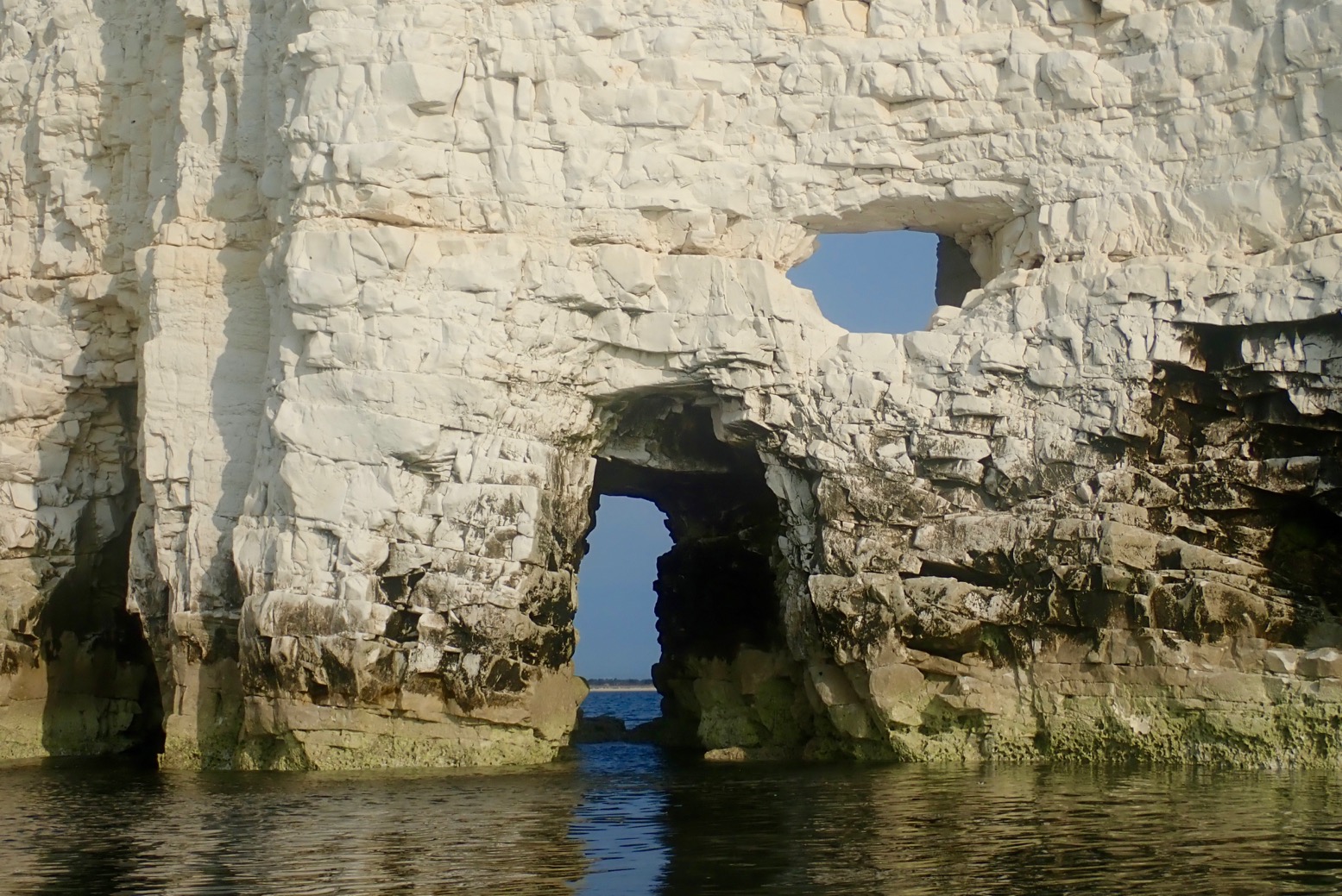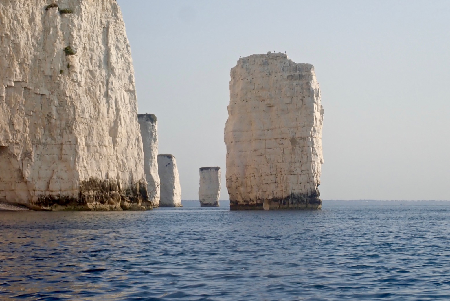 We eased around the corner expecting the worst, but were greeted by a magical sight: a line of 200-foot high chalk cliffs receding to a distant group of stacks and pinnacles glowing in the soft morning light and all soothed by a gentle breeze.