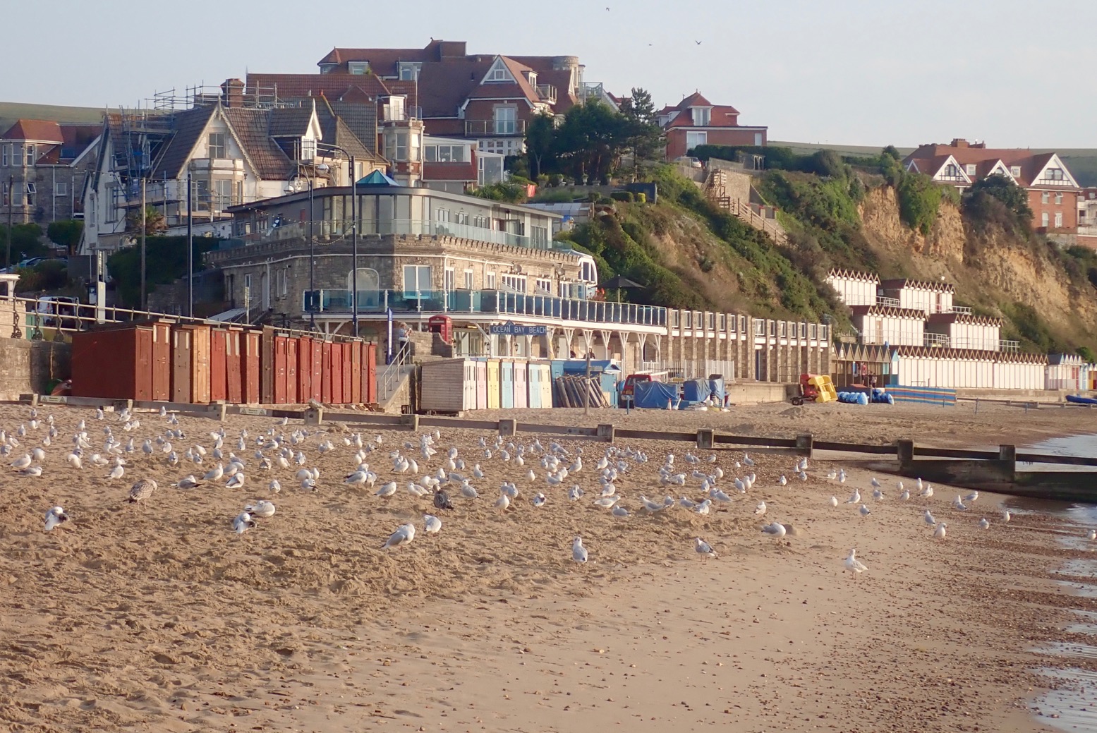 Ten minutes after a paddling away from a tranquil Swanage seafront bathed in a Turneresque light (above), we found ourselves battling a stiff breeze rolling off the Ballard Downs on the north edge of Swanage Bay.
