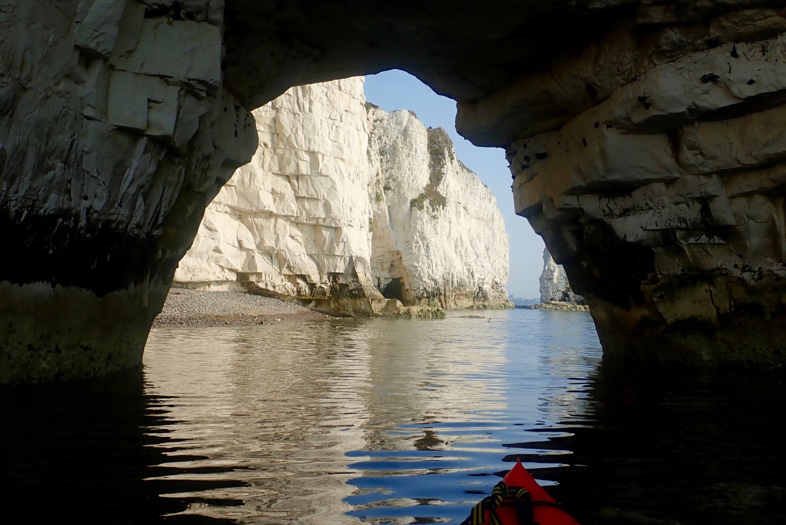 The odd whitecap scurried by, a sign that the IK Limit was not far away. This felt like more than the predicted 10mph northerly. We dug onward, and once tucked below the cliffs the pounding eased. The northerly was probably amplified as it rushed down the south slope of the Downs and hit the sea. We’d paddled through that turbid patch – a bit of a shock before breakfast. What would it be like once out in the open round Ballard Point? Mutiny was afoot.