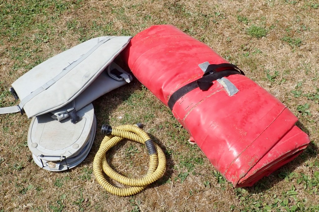 Other than that, the old dog is in good shape and would look better once I clean off the dried duct tape residue and stray glue. I weighed it off some suitcase scales: 12.7kg + another 1.5kg for the seat. First run I’m going to risk 0.25bar (3.6 psi) in the sides to see if it glides like a Seawave and stings like a bee. What’s the worst that can happen?