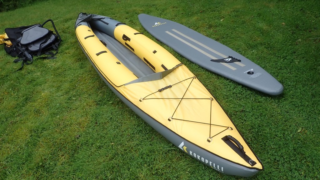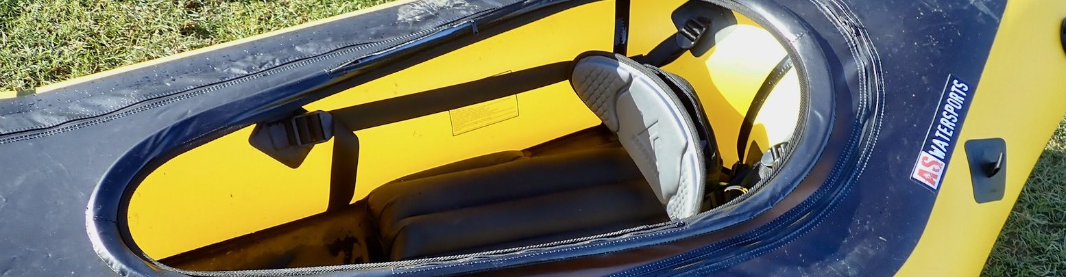 Next are seats and footrests – no loose item escapes ‘Kokopelli’ branding. The firm EVA foam seats are common on many IKs these days, but stiffness is best suited to a backrest, not a 4cm-thick seat base which, sat on a firm DS floor may be too low for a an efficient paddling stance and too thin for all-day comfort. It’s something easily fixed with an inflatable cushion like a packraft seat base. More seat ideas here. The generous width of the Moki II means raising the seat is unlikely to affect stability.