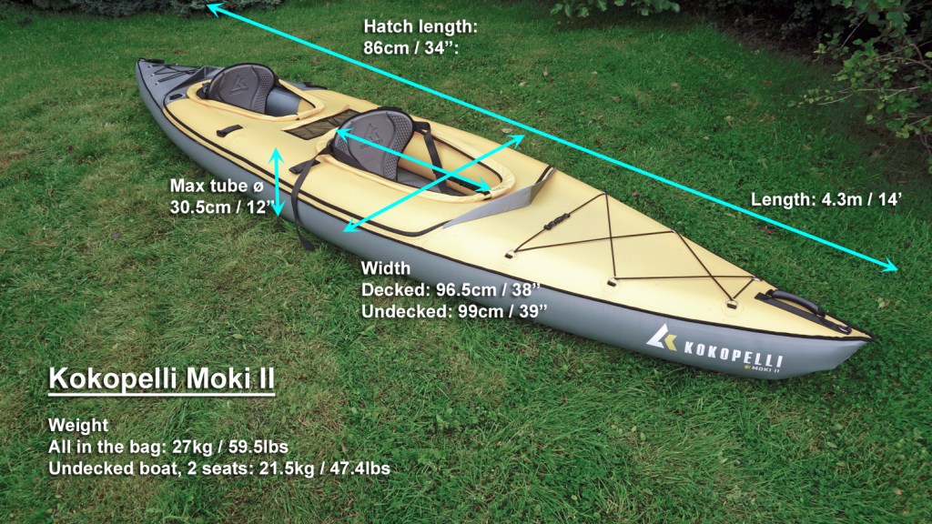 Based purely on online photos and specs, my Moki II preview a few months ago brought up anomalies with the boat width. Getting an actual boat allowed some of these specs to be verified in red, above. Some are out by 50% and the claimed packed size of 29″ x 14″ x 13″ is more like twice as wide. You can tell from the rambling, repetitive ‘What they Say…’ quoted from the same page above that it was hastily put together. That’s a shame as from first appearances, this cannot be said of the boat itself. And from the exceedingly low psi figures quoted, it’s not like it’s the usual ‘tactical exaggeration’ to make the Moki II look better than it is. You’d hope someone at Kokopelli might find ten minutes to correct the online specs.