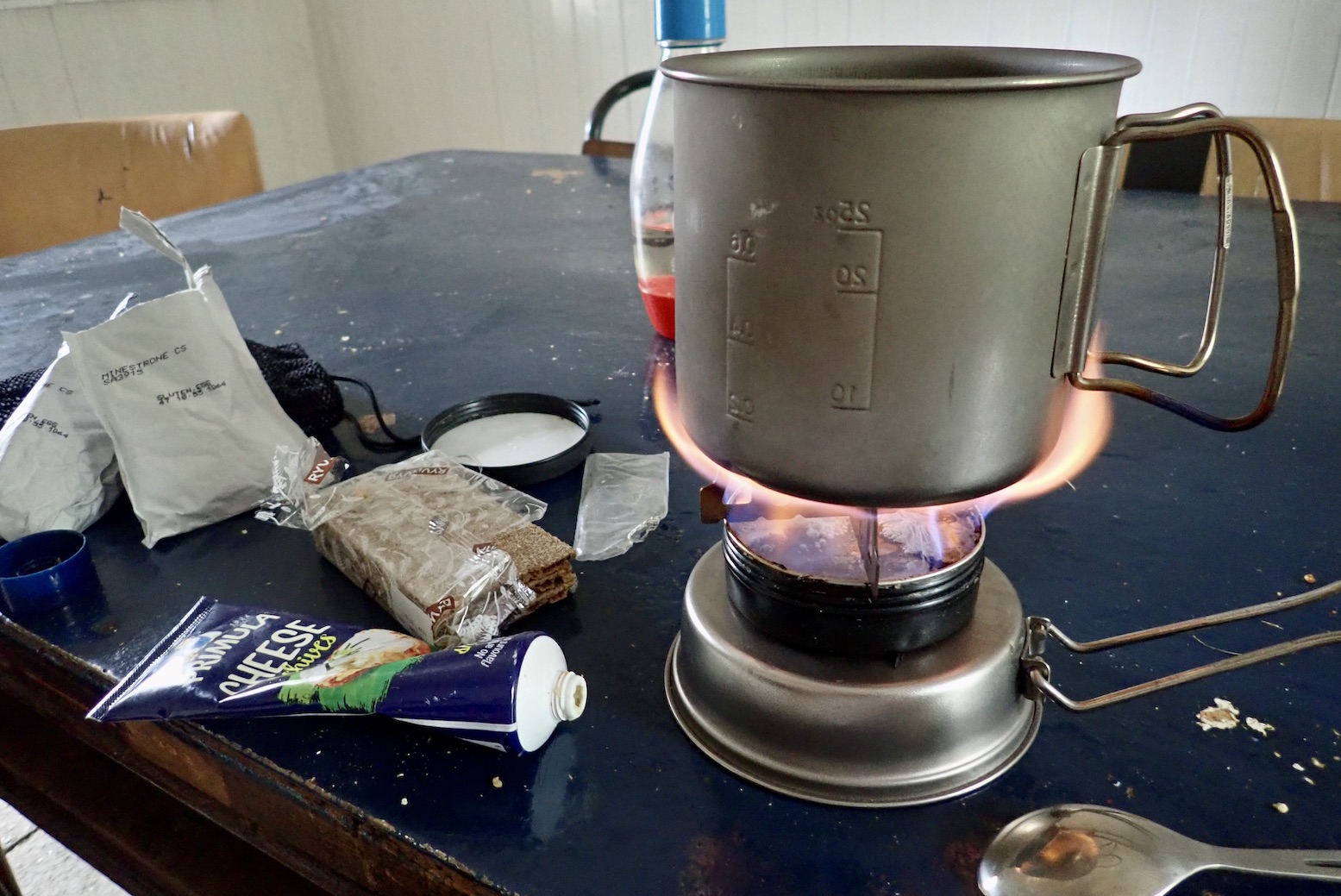 I used the Gimp again on a four-day Scottish trip to heat up water for lunch soup. Light and compact enough to carry in your day pack, it made the whole business effortless, while saving gas for other meals.
