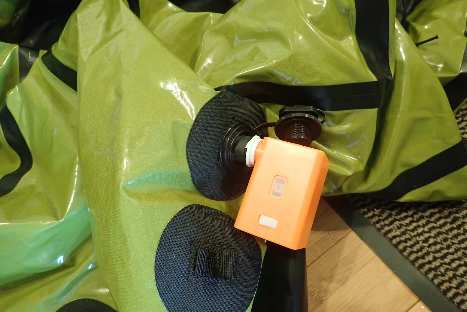 Air-bagging is a clever idea to inflate a typical packraft, but on some days it’s not the most intuitive of actions, perched on seaweed covered boulders. Once a day is fine, but on a trip where you’re airing up and down a few times a day, the effortlessness of the Max Pump is welcome. A good case to point was my paddle on the Wye where accessing my Rebel 2K’s internal storage pockets to get to the camping gear each night meant re-inflating the boat every morning. The Flex pump would have made this less tiresome. Another example is getting back from a tiring sea paddle and wanting to reinflate the boat to rinse and dry properly. Plug in the Flexy and get on with other after-paddle chores.