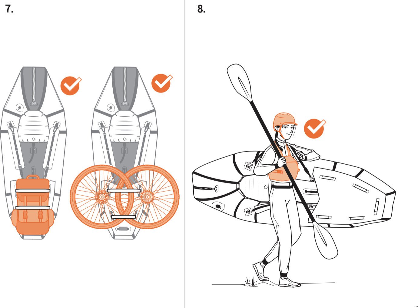 The carry bag doubles as a dry bag (like Gumotex IKs) but also works as the inflation bag via a tube. Three uses; quite clever if not weight minimalising. The packraft (and the bag?) has a regular Boston valve like Itiwit IKs, so you’d then use that tube or the boat valve to top up by mouth. Give it all you got: a firm boat responds much better on the water.