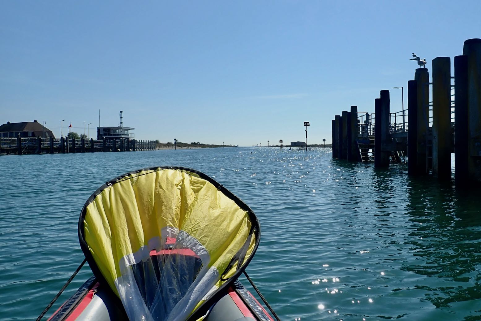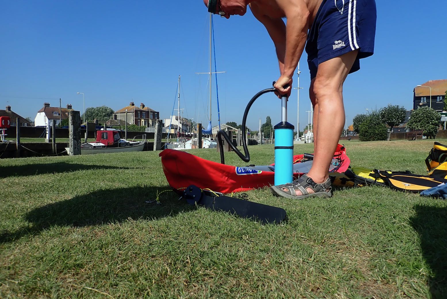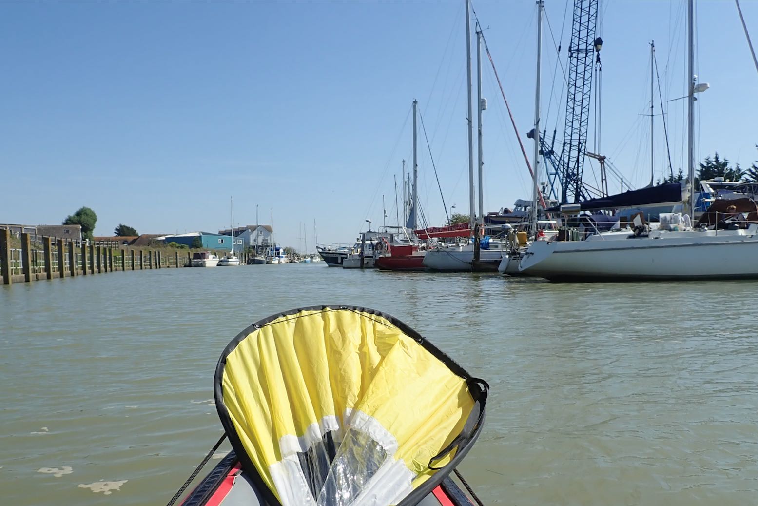 It’s only a 10-minute walk from Rye station to a boat ramp on the quay where the water was still inching up the concrete as I pumped up the Gumotex.