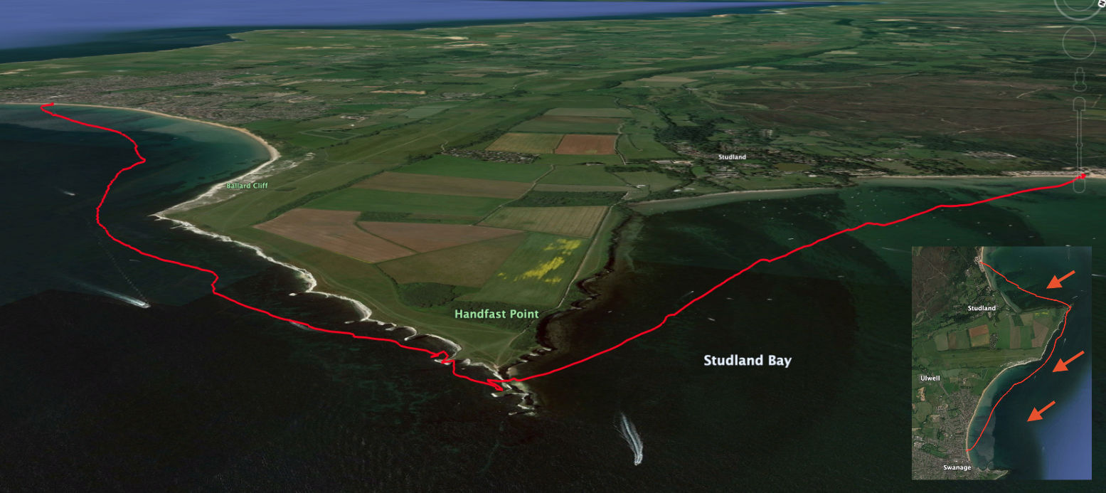 The tides at Swanage aren’t the classic sine wave. Every other tide rises and falls normally, but in between is a mini low and high. Who knows how or why but I suppose the reservoir of Poole Harbour, plus the English Channel funnel have something to do with dampening every other surge. Either way, the range was only a metre today and is hardly ever more than two down here; not enough volume to raise any strong currents. Nimbus later calculated a southerly flow of around 1mph which may help explain our higher than expected packraft speeds.