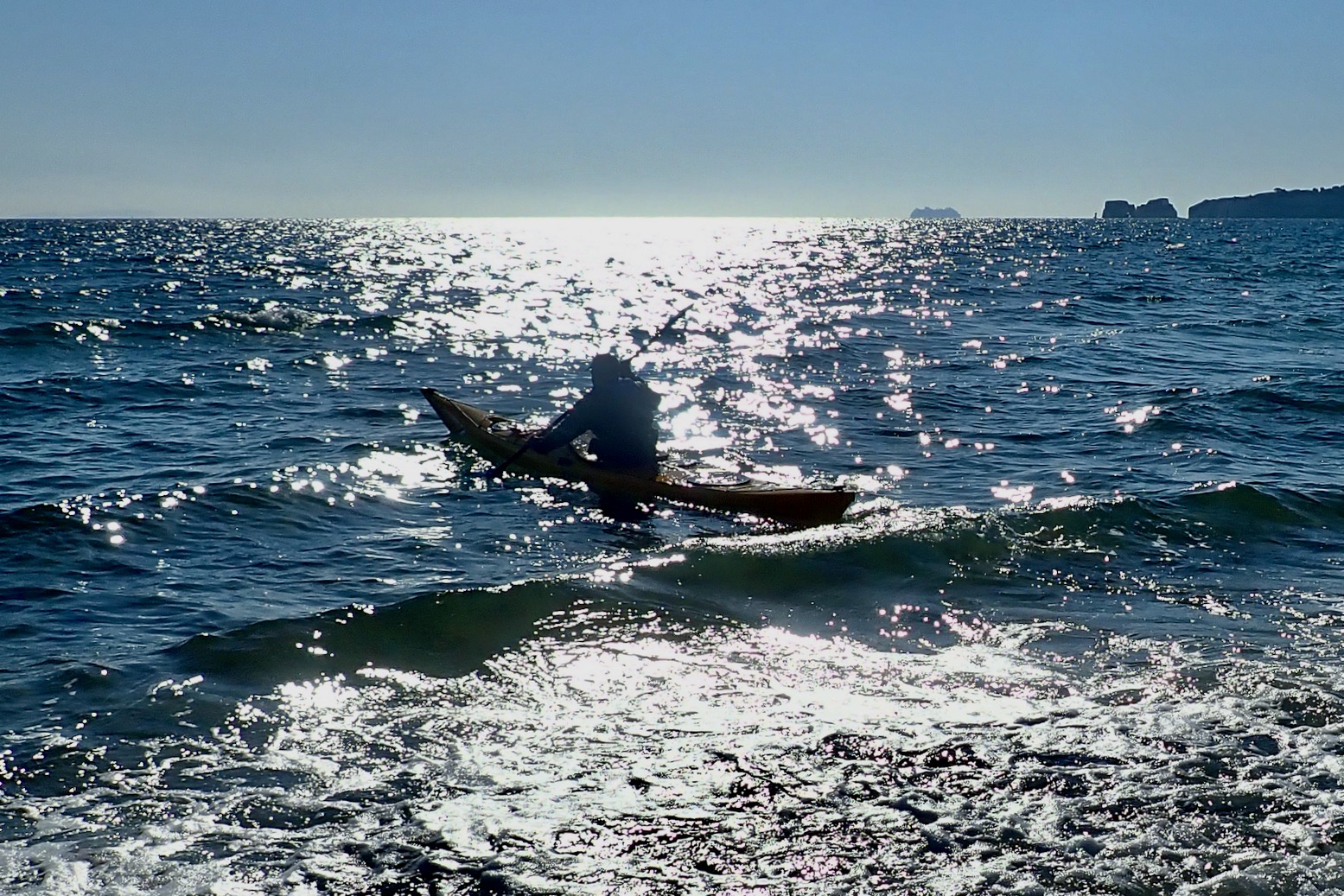 Part of the reason I got the longer TXL was to try more coastal packrafting, even if the extra bulk and weight (actually only 450g more than my previous Rebel 2K) might set me back on overnighters. This is not a paddle I’d have attempted in my backheavy 2K, even with a deck; it’s just too slow to be enjoyable. But having owned a 2.9-m Nomad S1 like Barry’s, I was fairly sure the TXL’s near identical length, buoyancy and similar ‘footprint’ would make a difference. There is something about sitting in the middle, not the back end of a boat, that makes it feel more reassuring.