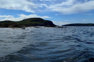 I put in at a handy little slot a mile or so from the house and set off with the usual rear skeg and the floor pumped up and with the nozzle accessible at my feet. All was flat calm in the lee of the light northerly until I turned north at Fox Point into a headbreeze up to Old Dornie harbour.