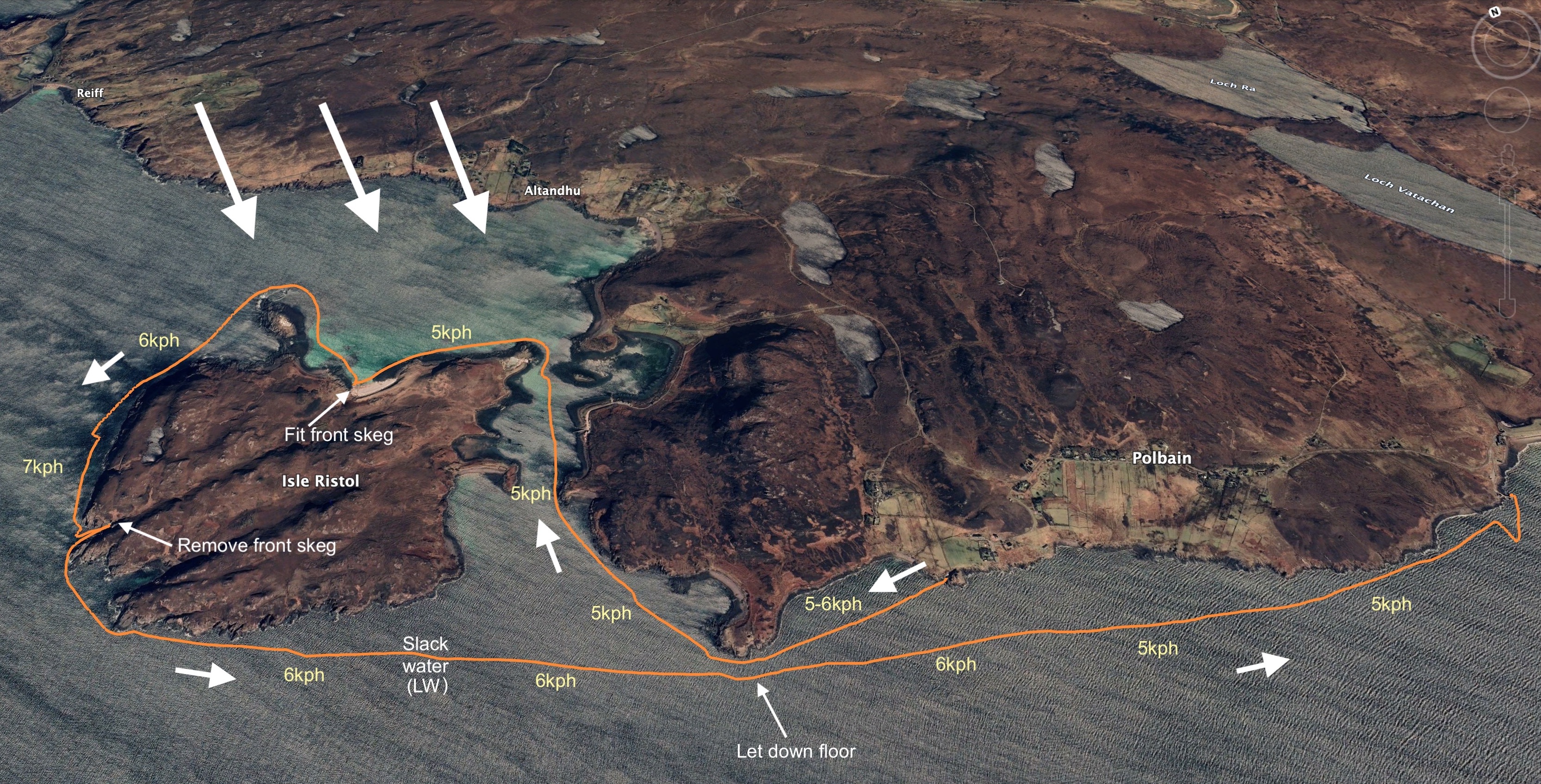 Barely in control, I couldn’t put my finger on it, and at one point had that unnerving feeling of a swimmer caught in a riptide. I’ve noticed odd conditions on this corner of Ristol before, so decided to just keep paddling south in the hope of getting out of the bouncing waves.