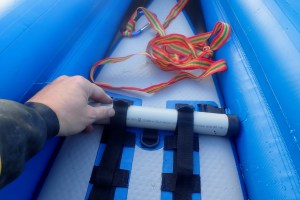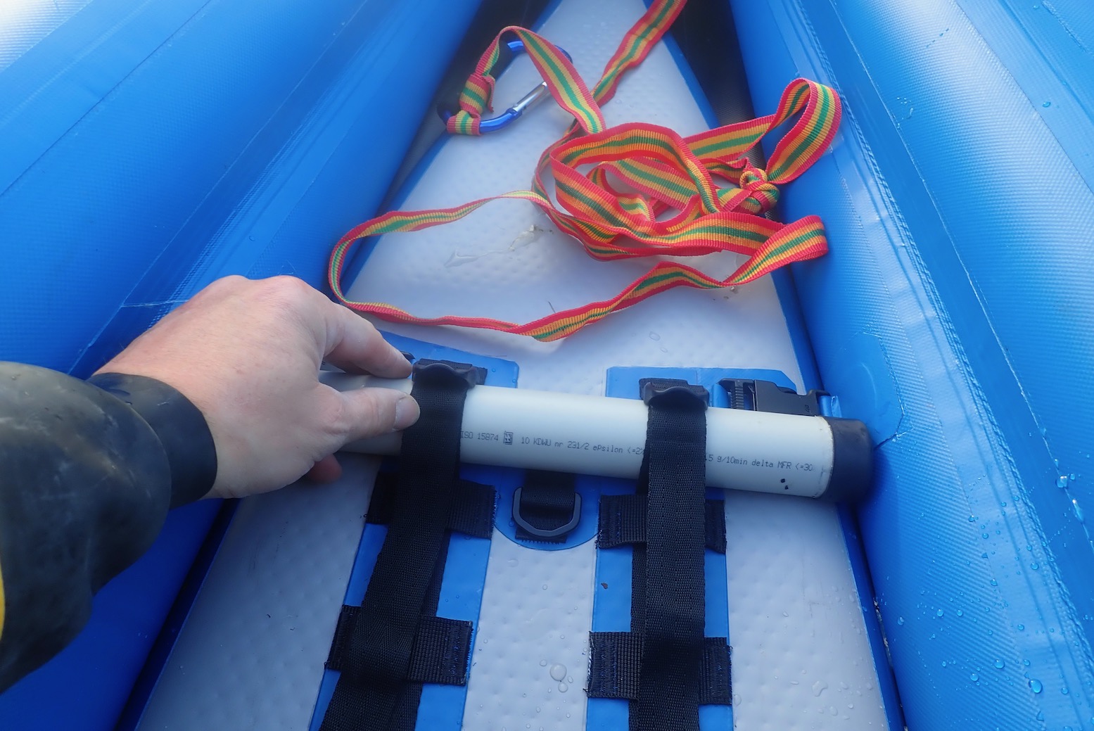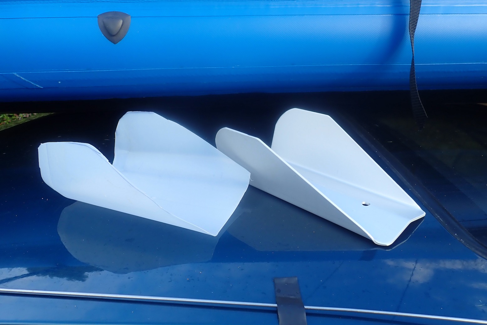 You can’t fit/remove the twin-fin alloy skeg with the DS floor inflated, so I made a quick copy from a plastic container (below). My MYO skeg was a bit flimsy but setting off downstream the Igla tracked fine while turning as easily as the Seawave. It wouldn’t be hard for Zelgear to redesign the skeg and mounting to make it easily removable while still being secure. And while they’re at it they could make it in ABS plastic.