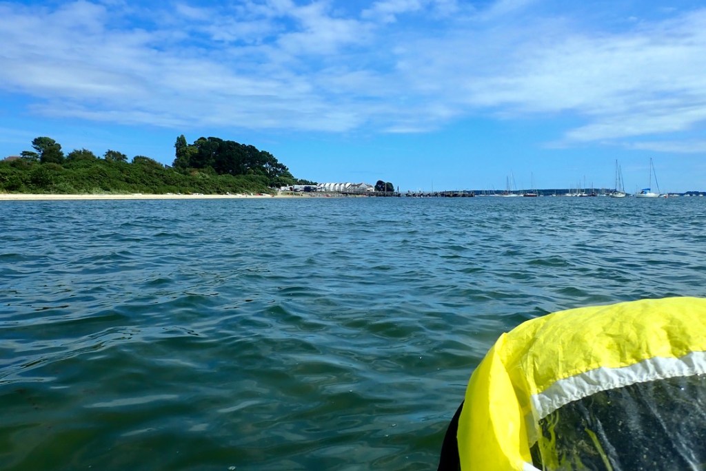 I took a wide arc out to avoid the worst of the tide race and headed off towards Rockley Sands where I came ashore last year on my way to buy a moto. The wind from my right wasn’t ideal for sailing in my direction, so I paddled out into the channel to turn and get a better angle as it pushed me towards the shore.