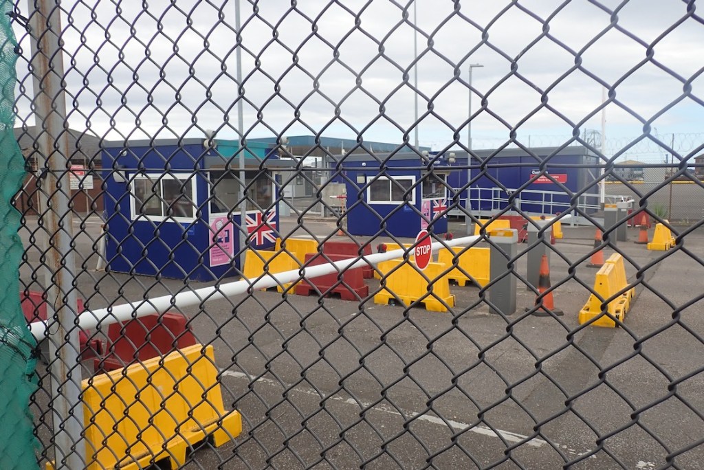 I dare say some security guard was observing me on his CCTV lair somewhere. After nosing around the portacabins and sheds looking for someone, a guy appeared in his car and swiped me out with his pass.
