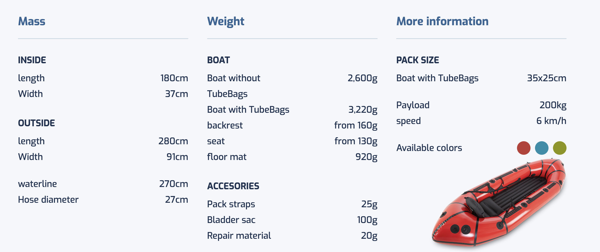 Long packrafts of around 2.8 metres offer more packing space and less annoying bow yawing, have a kayak-like, central solo paddling position with a level trim, but can fit a second paddler or a bike, as well as reach speeds up to 6kph. All for less than a kilo in mass. They are Pakayaks: the best of both worlds.
