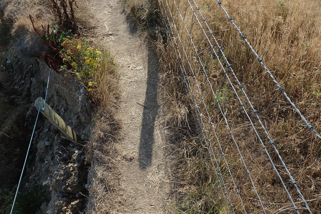 Tranquil Chapman’s and St Alban’s Head from Houns-tout summit. And actually my Teva Omniums are not the problem; it’s the wobbly, 8-kilo holdall hanging from my shoulders. But on the way back I have a brilliant idea. More here.The steep decent from Le Tout gave the underworked knees what for. I could do with my packstaff. I sold the 4-part Vertex paddle which it fitted. I need to convert my Anfibio Wave 4P but it’ll require some whittling.