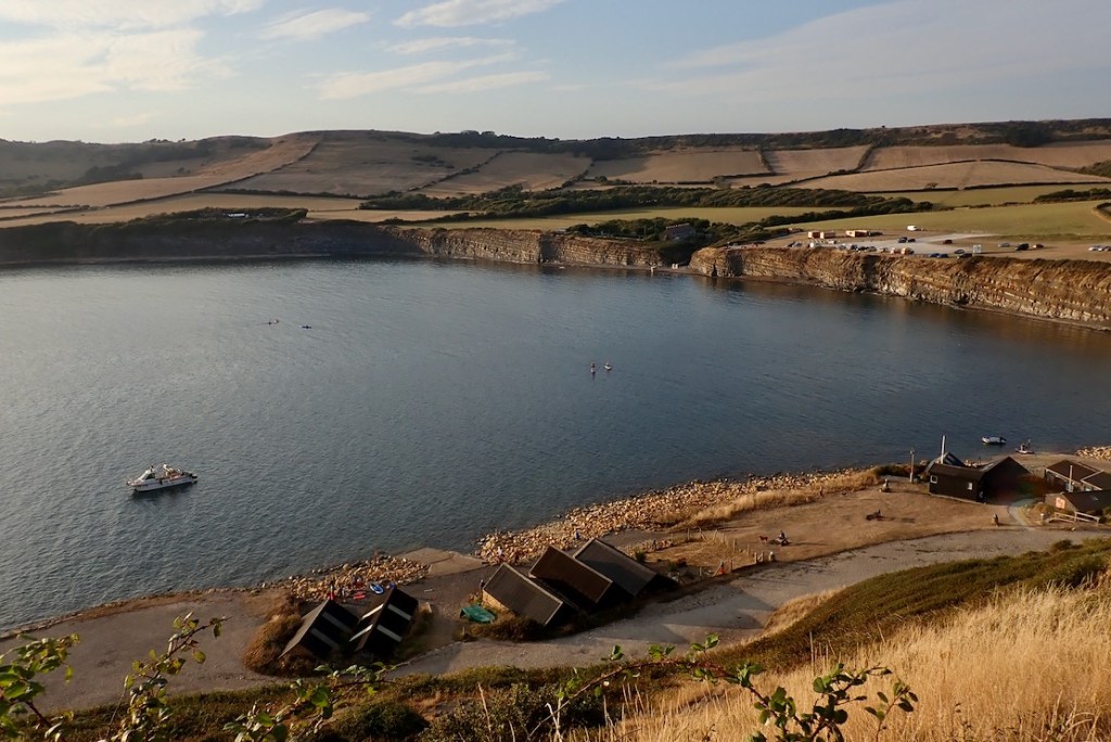 I witness a landslide near Punta Plio. This country is falling apart! I should get down there houns tout suite and see what fossil treasures came down with the rubble. ‘Get me Professor Etches, I found the tail. That pliosaur is longer than you think!’In places the path is very narrow: barbed wire right to spike my raft, big drop left to spike everything else. The first half from Chapmans is tricky in places. Don’t be part of the next landslide.The SW Coast Path is cracking up. Must be the drought. Come the next deluge it could all come apart and slide into the sea, a few feet to the left.All around as parched as southern Spain. At one point a cheerful passing walker observes ‘Ooh, paddles. What’s in the bag?’ ‘A boat‘, I reply. ‘Oooh, luvlay juvlay!’ she saysAt last, the rotund edifice of Clavell Tower just as the battery warning light starts flashing and the legs wobble. I hobble down the steps like Steptoe with a hangover, passing pouting Instagramers capitalising on the golden hour.I’m a sweaty, achey mess but it’s been a lovely summer evening’s walk up and down 340 metres along a tiny part of the South West Coast Path. They say the total elevation gain on the entire 630-mile trail from Minehead to Poole is a staggering 115,000 feet (over 35,000 meters). That’s like climbing Everest from sea level four times. And yet hundreds manage it every year, signing off with thighs like telegraph poles. They’ll see many amazing things, like Kimmeridge Bay an hour before spring HW: not a foot of a beach to spare.The ride home via a refreshing ford cools me off.There you have it: KB to Chapman’s. A lot easier to paddle than to walk. That’s another stage of Weymouth to Poole ticked off, leaving the trickiest 8 miles for last. First, Chapman’s east around St Alban’s Head 4 miles to Dancing Ledge. Then about the same distance from there to Swanage, around Durlston Head, another tidal pinch point and with no take-outs. In a sea kayak you’d swan through in one go, slicing through whatever the tides bring. But you can’t pop it in your pack and bus home. Alone in the TXL I’d pick the neapest of neaps and lightest of winds – and still break it into two manageable stages. Summer is coming to and end. Maybe soon or maybe next year.