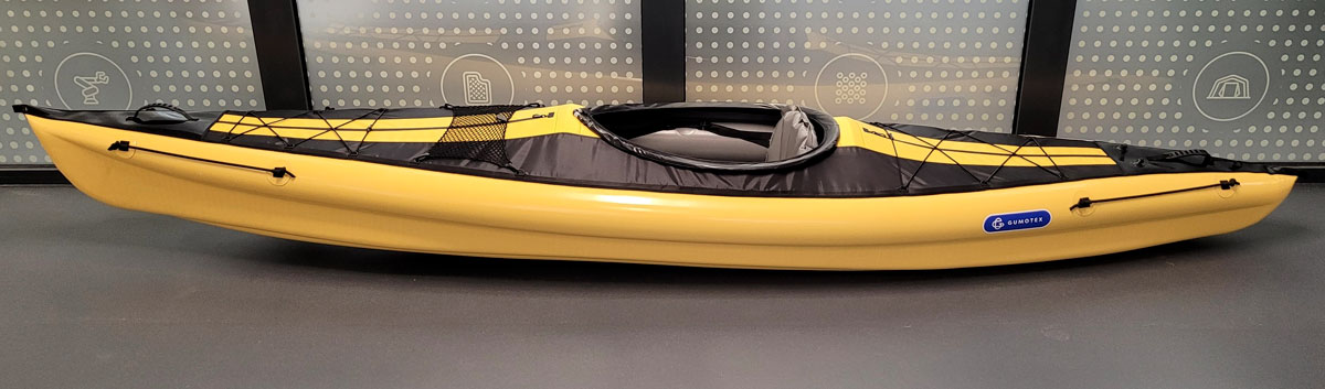 It’s the end of 2025 but there still no mention on the Gumotex website of their new decked single seater Aurion, announced in 2024 (video below), and sold for months in some European outlets at around €2400 with the new 5-year guarantee. Cool name and it looks good too – but so does the Rush 2 and so did my Seawave with the optional deck (left). Something about a deck can make a long IK look more like a sea kayak.