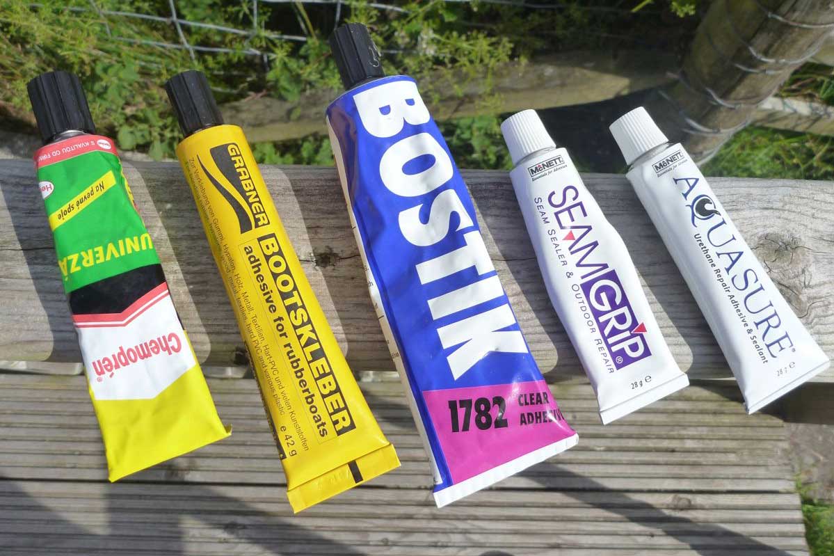 is for gluing. If you get into IKs you want to get good at this. Rubber- or PVC/PU-based boats require different glues. On the left, from the left: Gumotex Nitrilon glue (crap), Grabner EPDM glue (never tried), Bostik 1782 (not bad) and SeamSeal and Aquasure (‘Aquaseal’ in US) for pretty much everything. There’s more here including two-part glue (right) which is the best of all.