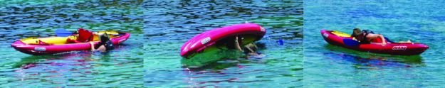 is for capsizing, the fear of which draws many beginners to SoTs and open IKs. If you fall out of an open IK in deep water it’s dead easy to flip the boat back upright and crawl back on without help, paddle floats or bilge pumps and in as little as 25 seconds (below). That can mean less risk of hypothermia.