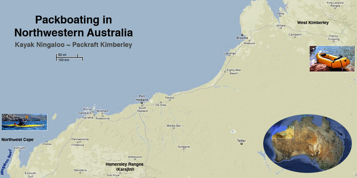So, I ran out of easy conditions for a good sea paddle through Ningaloo; something I suspected might happen even before I left the UK. But I wasn’t too bothered. I got a couple of days in plus that lovely calm morning and knew that a meaty packrafting adventure lay another 1000 clicks up the road in the Kimberley (see map below). I got the impression from Jeff and Sharon that, apart from the humpbacks and not least the satisfaction of having kayaked the entire way from Coral Bay to Tantabiddi, I hadn’t missed that much. Unlike Shark Bay, here it was the reef that was special, best appreciated in calm conditions or on the end of a snorkel. Otherwise, you might as well be battling the winds anywhere along the WA coast.