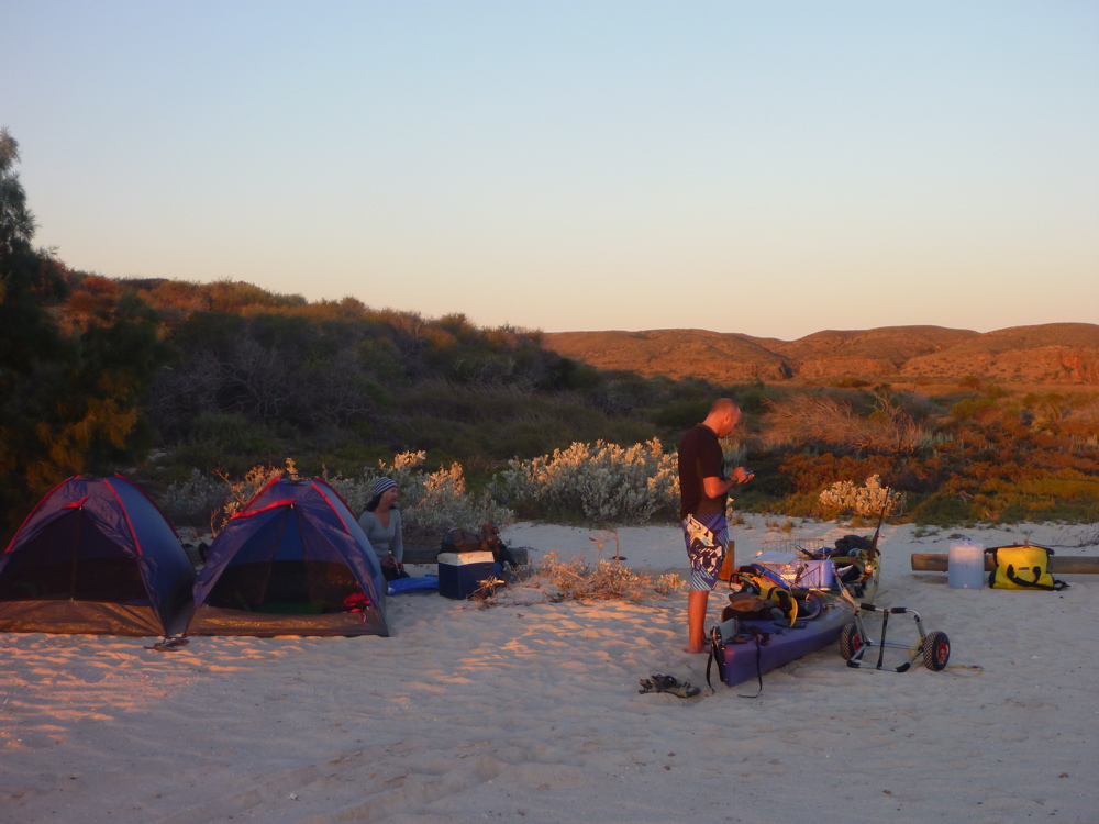 I set off to Pilgramunna Camp where a note from Jeff explained that an extramural pitch had been allocated for us boat people. Months earlier I’d spent ages on the DEC website looking for kayak touring regulations in Cape Range but had found nothing and so concluded it was the same ‘come through but leave no trace’ deal as at Cape Peron down at Shark Bay. Turns out there are no formal regs for kayak tourers visiting the park as it seems only a few kayak parties pass through each year. But as the park is about 60km long along the shore, you’re going to need at least two nights in the half dozen official campsites which mostly probably need to be booked in advance in the more tolerable seasons. That’s something that is difficult to plan for if coming up from Coral Bay, nearly 100km away.