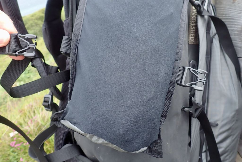 • Loads of black buckles with very long black straps on the black back panel (a 1-star review on the 6M website also mentioned this). • Fixed shoulder-strap mini-pockets too small and too high for me. • Wide outer panel means too much slack to cinch down the side straps fully • Refitting once back on land takes more time and buckling about than just shoving it all in a regular backpack.