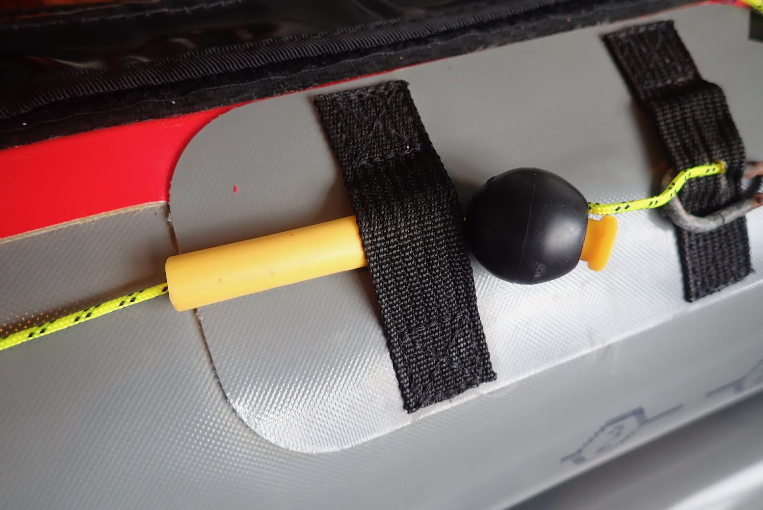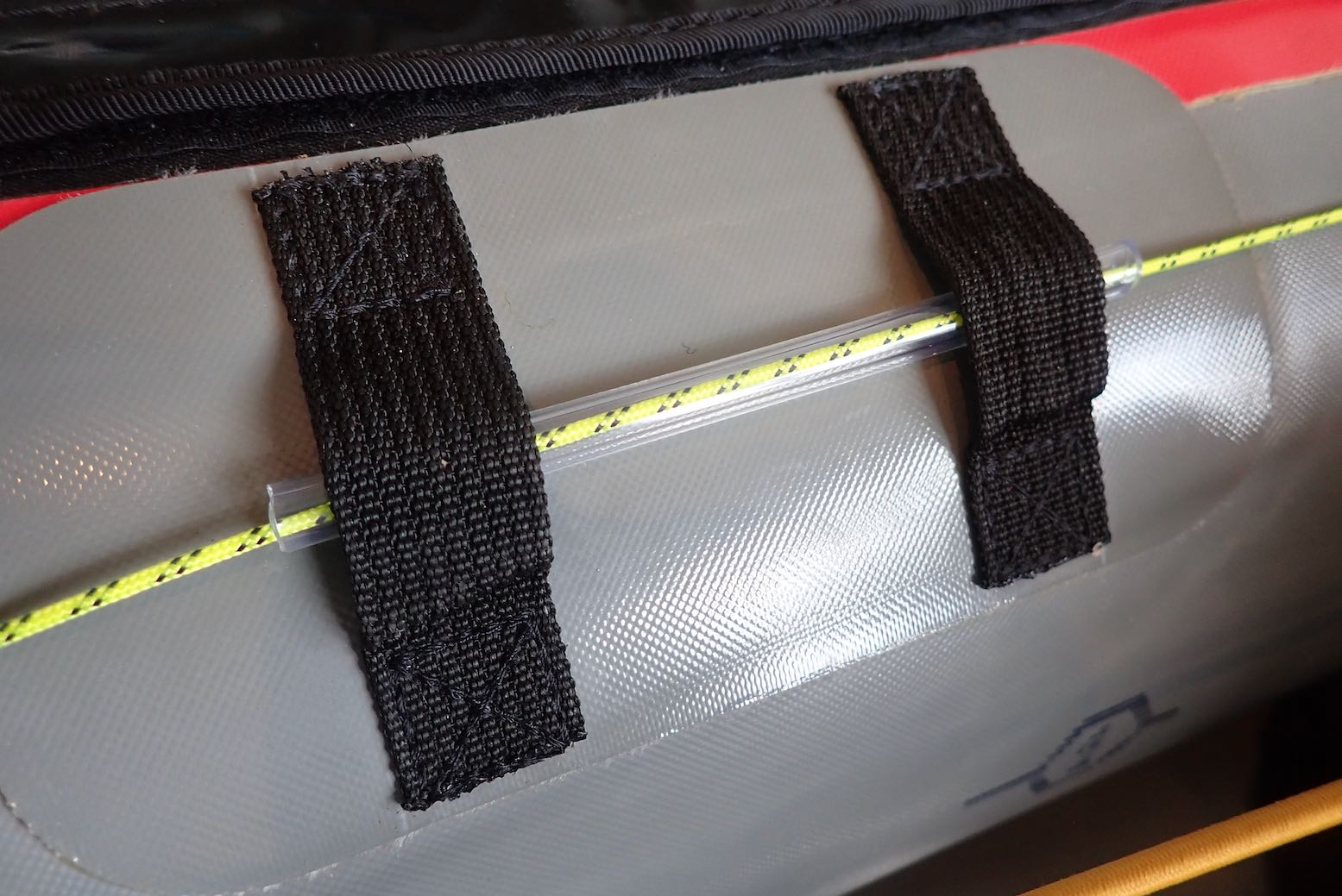 I’ve since tried to tidy up the set-up by tucking in unneeded loose ends and tying coloured ribbons to the important cinch straps, just like better tents have colour-coded markers for poles, but I couldn’t tighten the UDB down properly so it was often lopsided. So I bought myself the S2S Big River 65 dry bag, top-loading, like a rucksack. As mentioned, the Rebel 2K’s massive 140-litre in-hull storage capacity now makes a bombproof, over-the-bow dry bag like my trusty UDB redundant.