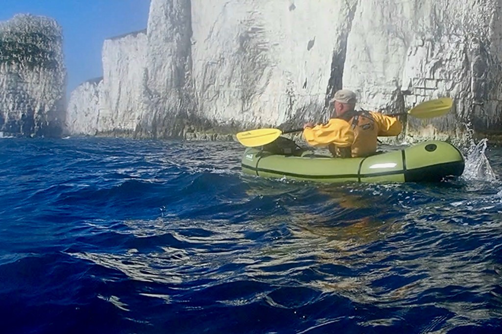 Alone, these exposed sea cliff paddles make me quite nervous, and a regular-sized packraft like my old Alpackas or Rebel would feel even more unnerving. The TXL’s healthy 2.8-metre length reduces that impression with less pitching, but I never fully relaxed today, so was happy it was only a mile to Seacombe inlet at which point I could get out and walk back if I wanted. Away from Dancing Ledge things calmed down a bit or I just get used to them, but elsewhere I needed to keep an eye seaward as bigger waves rose up.