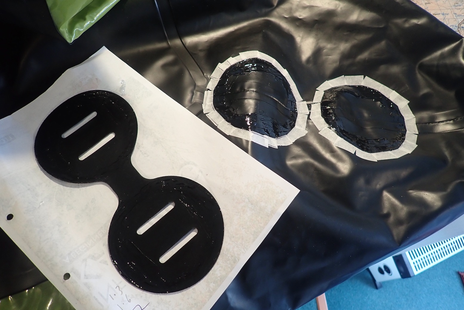 The heat reactivation trick was not one I’ve heard of before with glues (except to loosen stuff), but you could see it worked. Where the positioned patch was lamely stuck to the boat, a bit of heat saw it bond down well with some added rolling. You can tell when something looks well glued and this feels like it, though I’m sure glad I didn’t have to do that another six times.