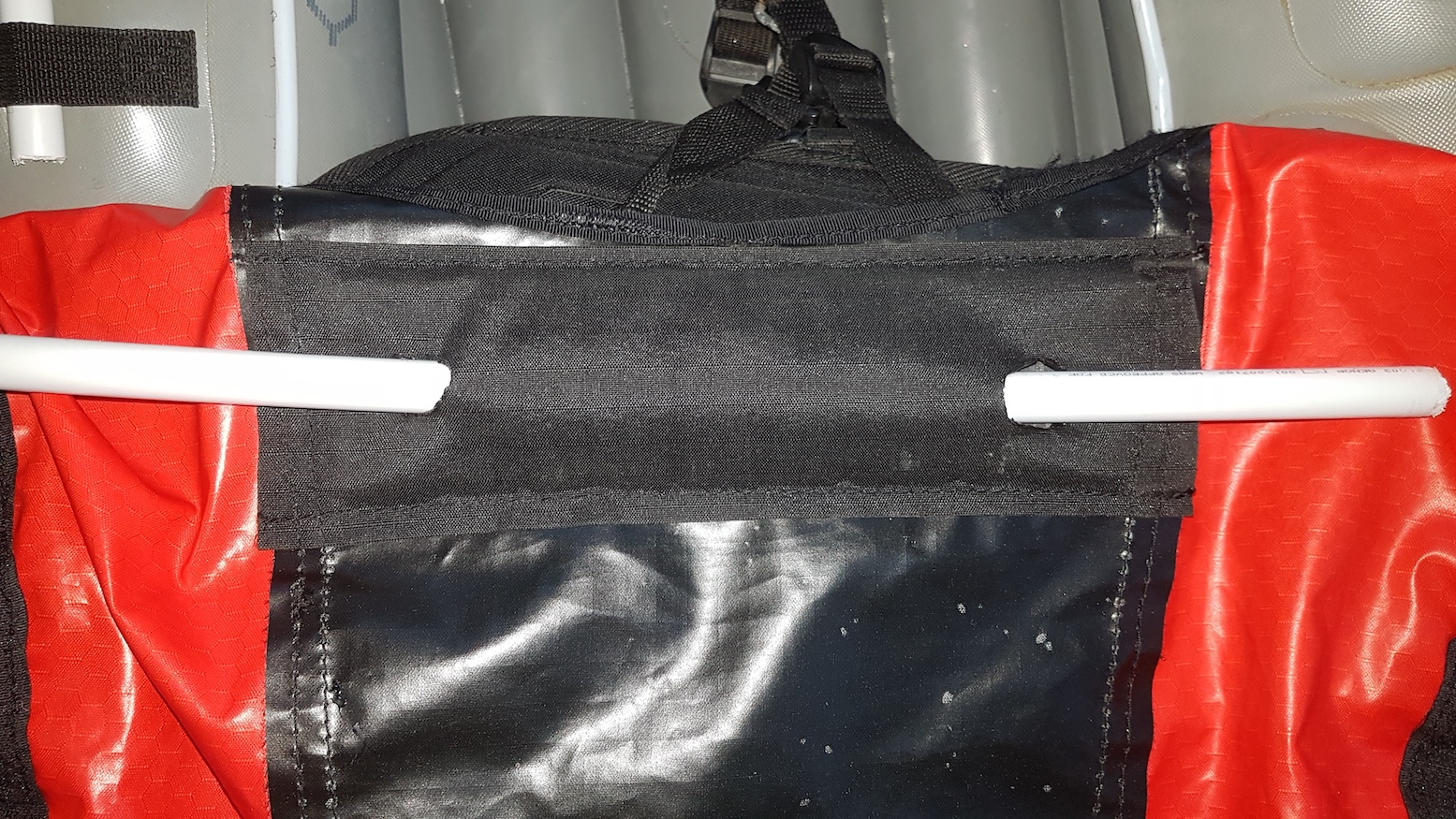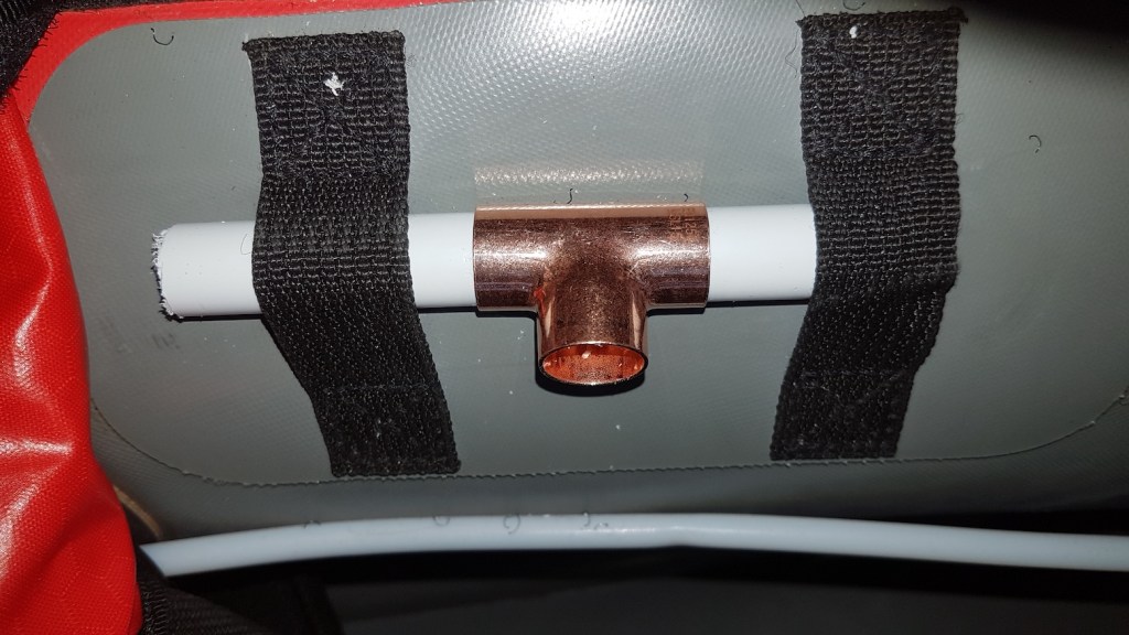 What I did was to use 15mm speedfit pipe for the arch with a T piece to make the foot that goes in the tabs on the boat’s side tubes. The beauty is you can leave the deck velcroed on ( saves wear) and roll the lot up with at least 2 of the supports in place and it still goes in the rucksack.