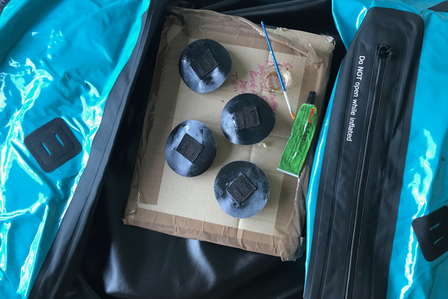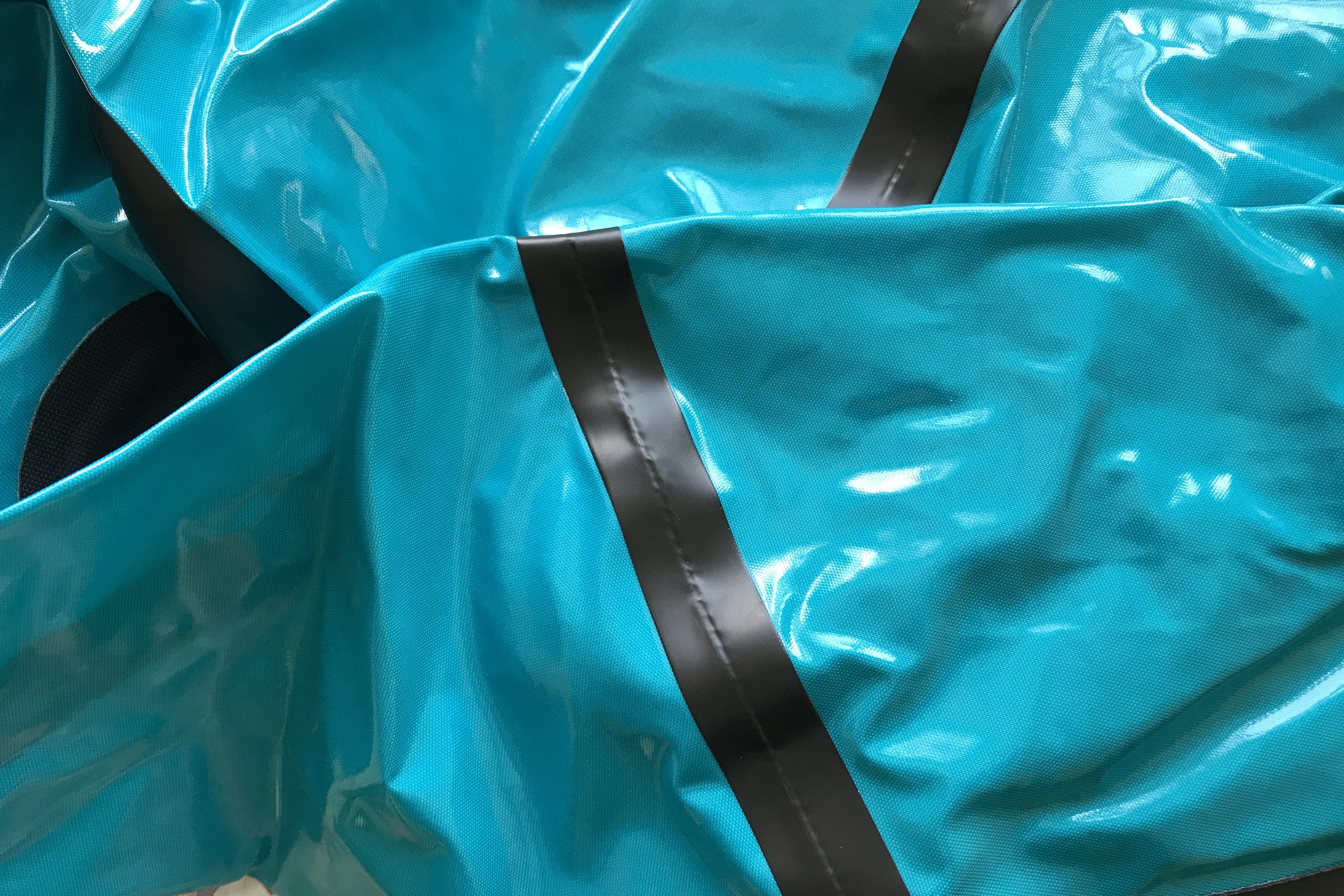 The single colour TXLB+ is just like my blue boat with optional thigh straps, floor matt, strap attachments and massive and secure TubeBag storage, but with the roll-up self-bailing drain hose we first saw on the 2022 Revo white water packraft. I never got to test that system properly, but the principle of flowing water sucking the swill out sounds plausible. As it is, you’ll be up dry on a floor and seat anyway, so it’ll take a lot of splashing to swamp the boat.