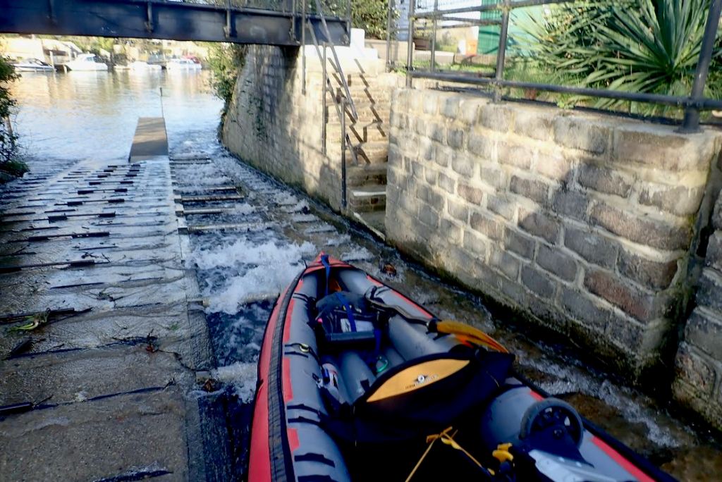 Had I thought it through a bit more, I’d have registered the railway also following the Avon valley, and carried on six miles down river. There are weirs at Warleigh, a mile after Dundas, and Bathampton, both of which would hopefully with no more bother than what passed before. They lead to Bath’s amazing, neo-classically set Pulteney Weir, doable providing it’s no more turbid than pictured below. Bath Spa station is just 5 minutes away for the 16-minute train ride back to Bradford on Avon, looking down onto the river you just paddled. One for next time.