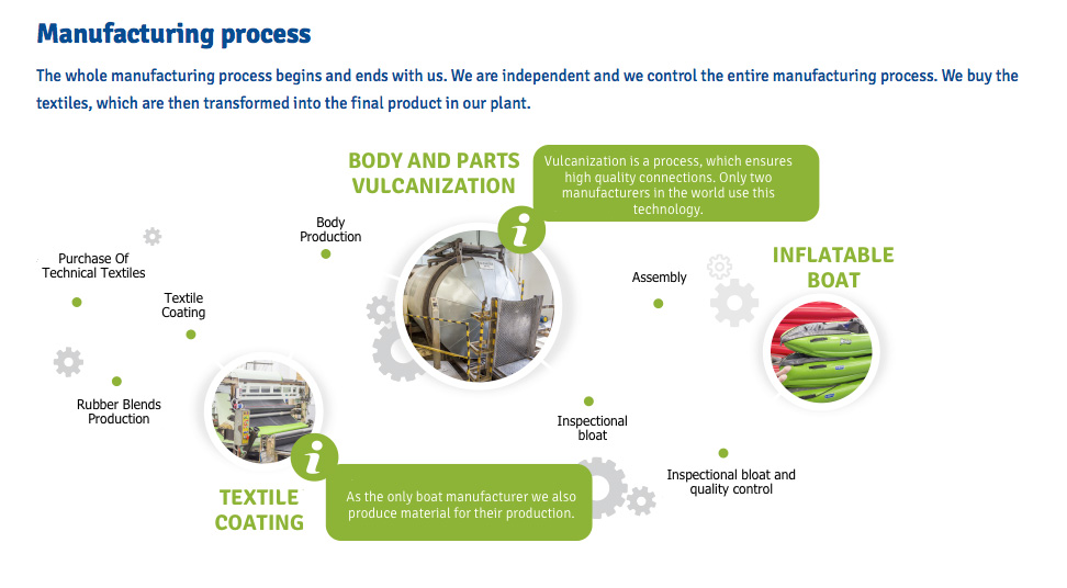 Starting in the 1950s and capitalising on new, rubber-coated fabrics, along with Semperit, Gumotex were among the early innovators of IKs (Zodiac, in the 1930s, made the very first).