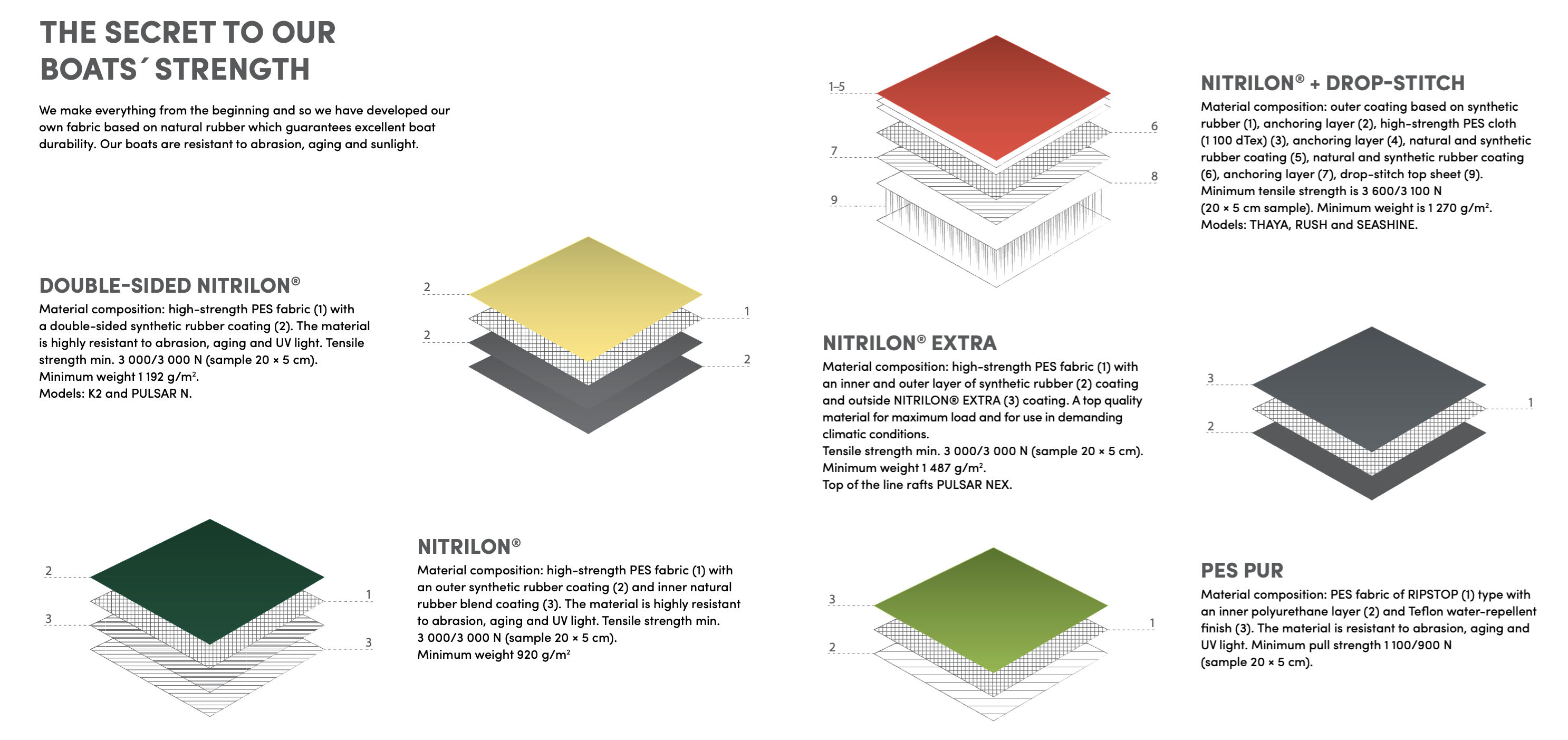 Gumotex IKs are made from Nitrilon, their own version of DuPont’s Hypalon: the original tough, synthetic rubber-coated fabric as used on white water rafts and which lasts for decades. (Grabner, by comparison, buy in their similar EDPM from Germany). Compare rubber with PVC in terms of abrasion: rub rubber along a rough surface and it may abrade and scuff; do the same with PVC plastic and it will also scuff and then heat up and melt.