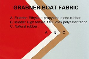 A near-identical product is supplied, among others, by Pennel in France under the ‘Orca‘ brand (above left) as used to be used on US-made Hyside IKs. Gumotex’s various in-house Nitrilons (below) are similar, as is Dow’s ‘Nordel‘ EPDM, as bought in by Grabner (above right) and other folding kayak and raft manufacturers.