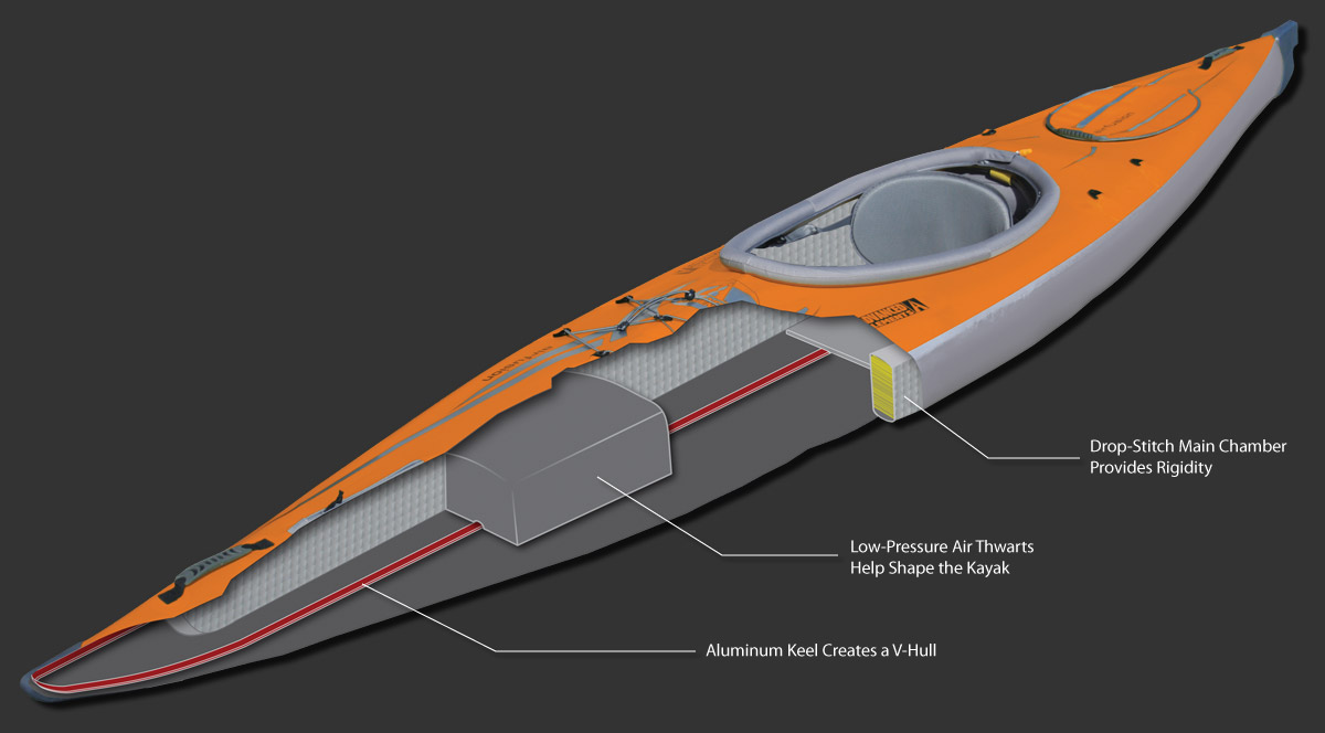 Even the hybrid AirFusion EVO which preceded the FDS AirVolutiion, seemed to be a messy mishmash of D-S side tubes, a stick under the floor and inflatable thwarts to help spread the sides and give the deck a profile. It does result in a good looking and fast decked IK, but there’s a lot of faffing in the assembly to get there. More here.